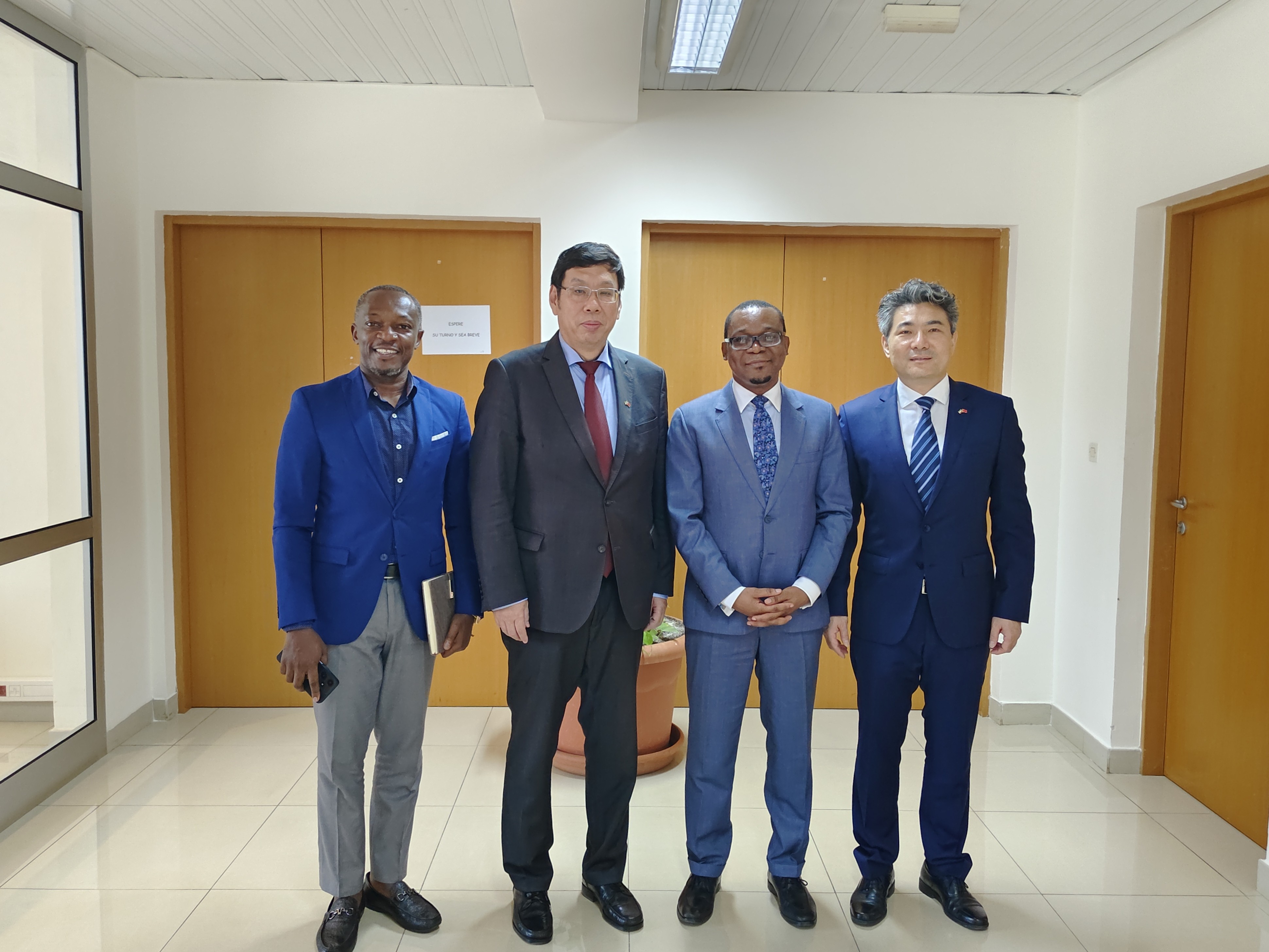 2024年1月15日,新任驻赤道几内亚大使王文刚拜会赤几卫生部长翁多,赤几卫生部医院合作与非传染病司司长克里索洛戈、使馆负责经济商务工作的郭峰参赞参加。